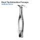 Forceps are used to extract root tip and fragments.