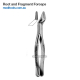 Forceps is used to extract root tip and fragments. Offset narrow beak can reach deep. Knurled handles for optimum grip even when wet. Forceps are made of surgical grade stainless steel and hand polished for lasting shine and durability.