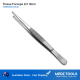 The forceps have 2x3 teeth which improves grip on tissues. The Forceps have a spring-action, flat design handle with serrated thumb grips for optimum control.